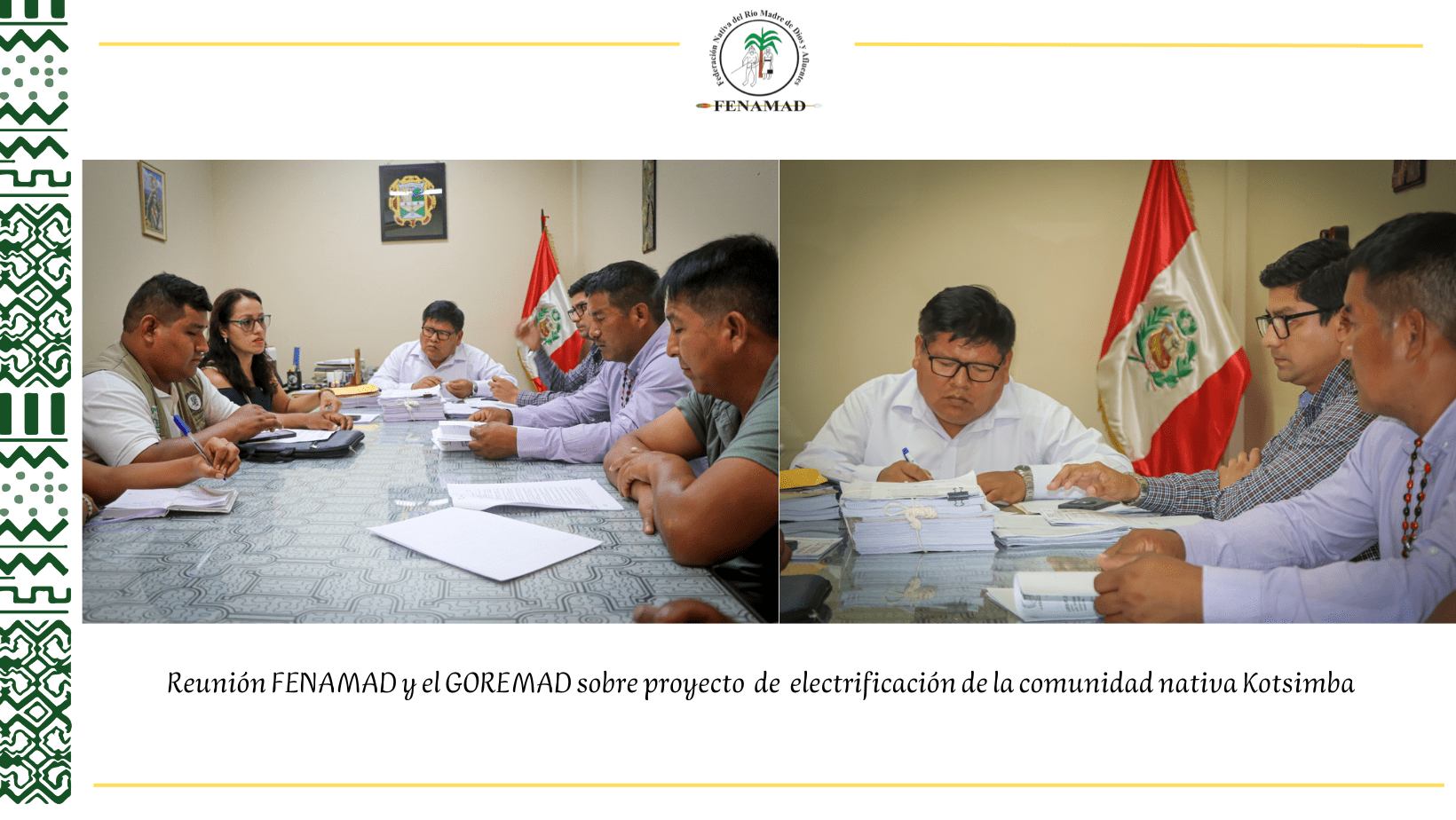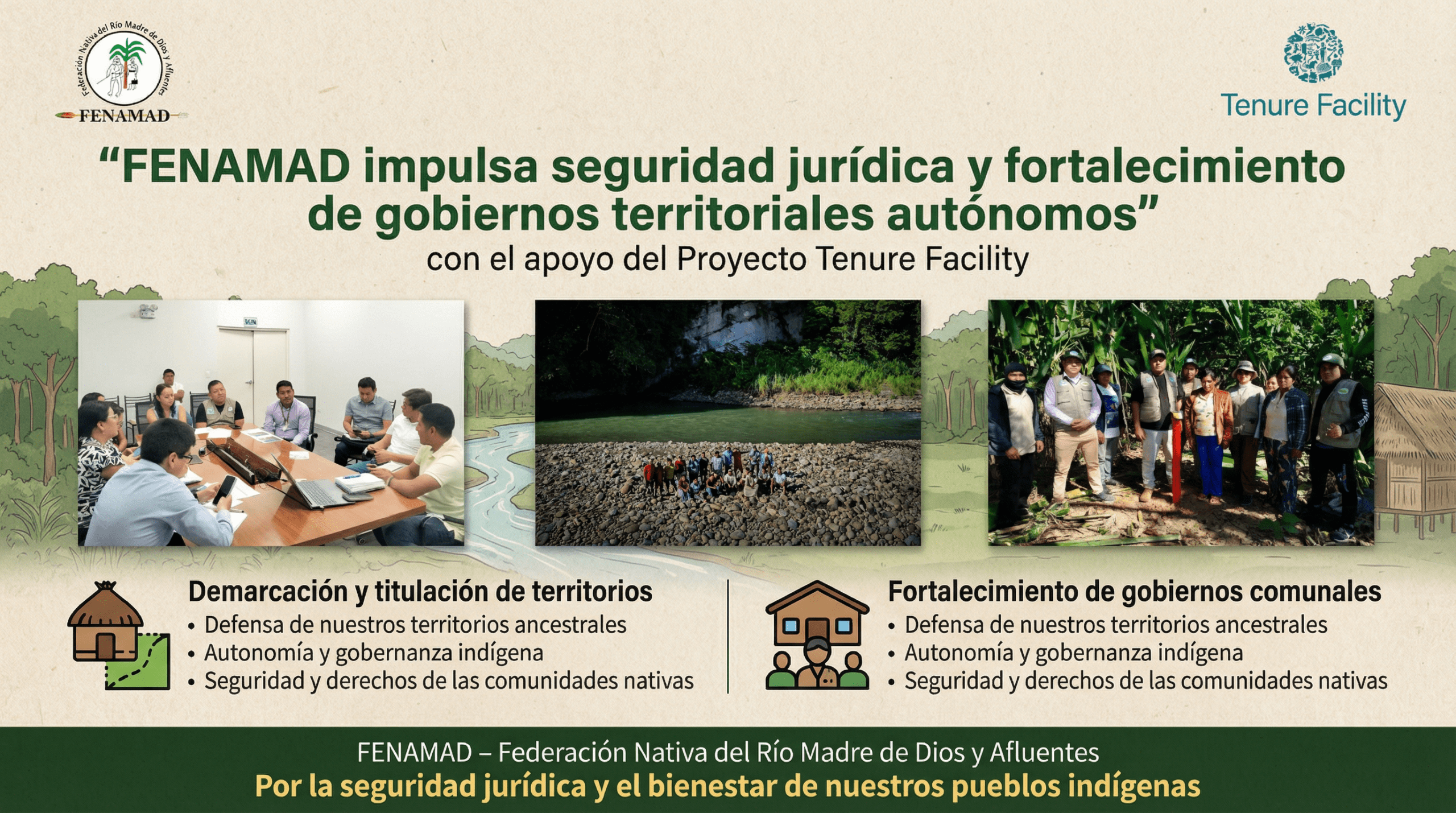 FENAMAD es la organización representativa regional de los pueblos indígenas de la cuenca del río Madre de Dios que defiende los derechos fundamentales y colectivos de pueblos indígenas y comunidades nativas, incluyendo los derechos de los pueblos indígenas aislados y en contacto inicial.