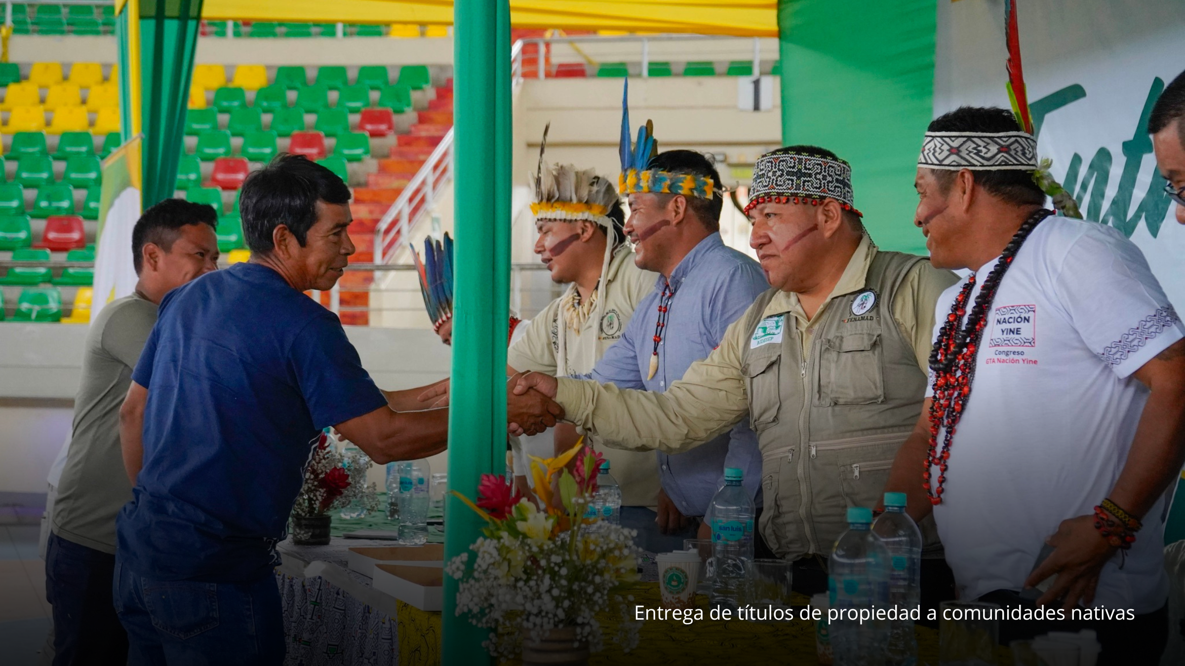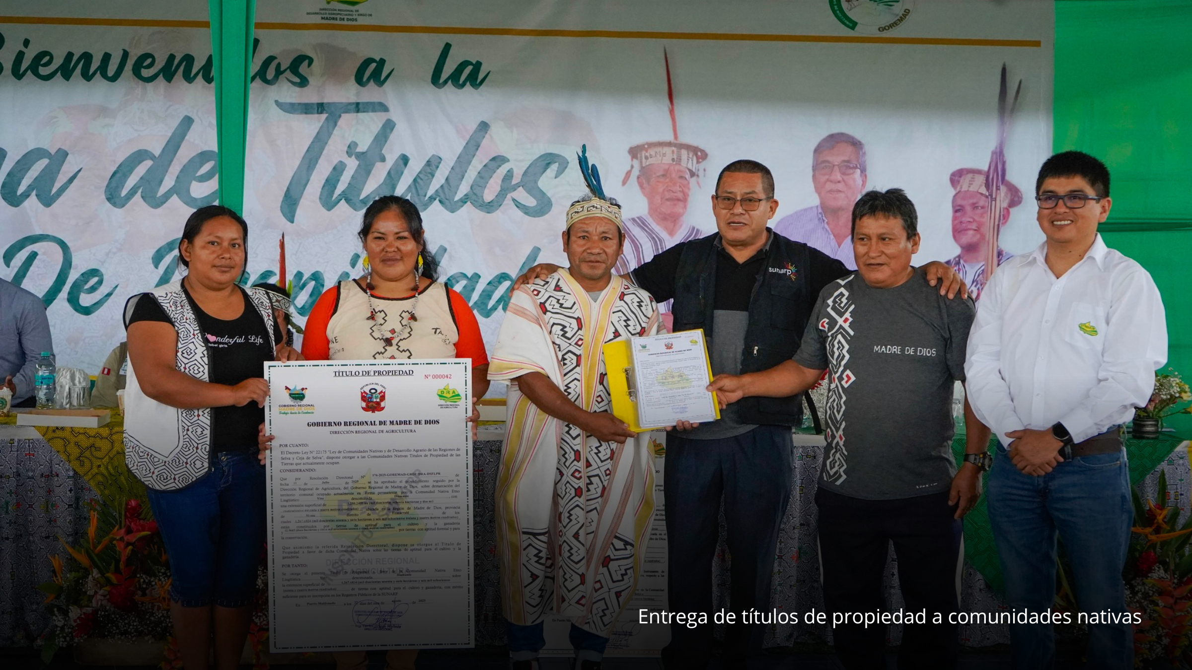 Asimismo, se consolidaron avances significativos en materia de seguridad jurídica territorial, con la entrega de títulos de propiedad a doce comunidades nativas base de FENAMAD: Mirador Santa Alicia, Santa Teresita, Barranco Chico, Boca Inambari, Monte Salvado, Puerto Arturo, Bélgica, Masenawa, Isla de los Valles, Diamante, Puerto Azul e Infierno. Este logro fue posible gracias al trabajo técnico sostenido de FENAMAD, en articulación con el Gobierno Regional de Madre de Dios, fortaleciendo la defensa de los derechos colectivos de los pueblos indígenas y la gobernanza territorial.