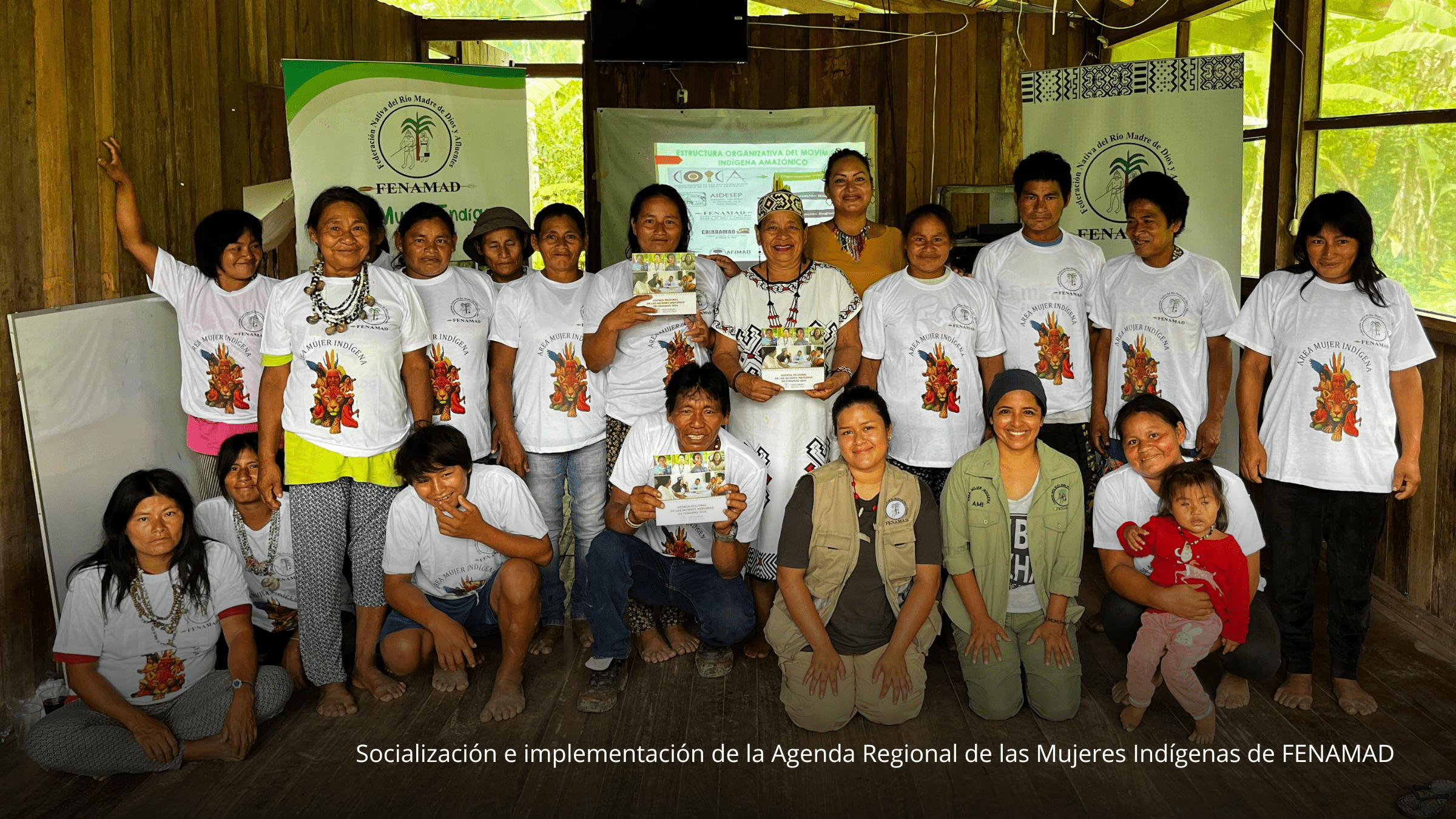 En paralelo, el Área de la Mujer Indígena (AMI) de FENAMAD desarrolló acciones orientadas al fortalecimiento del liderazgo y la participación de las mujeres indígenas en la gobernanza territorial. Se avanzó con la socialización e implementación de la Agenda Regional de las Mujeres Indígenas de FENAMAD y el fortalecimiento de capacidades en temas sobre la política de género, incluyendo un taller de sensibilización sobre violencia de género, en el que se presentó el protocolo de actuación en casos de violencia de género, así como contenidos vinculados a soberanía y seguridad alimentaria, participación, liderazgo y gobernanza, desarrollados en comunidades como Palotoa Teparo e Isla de los Valles.