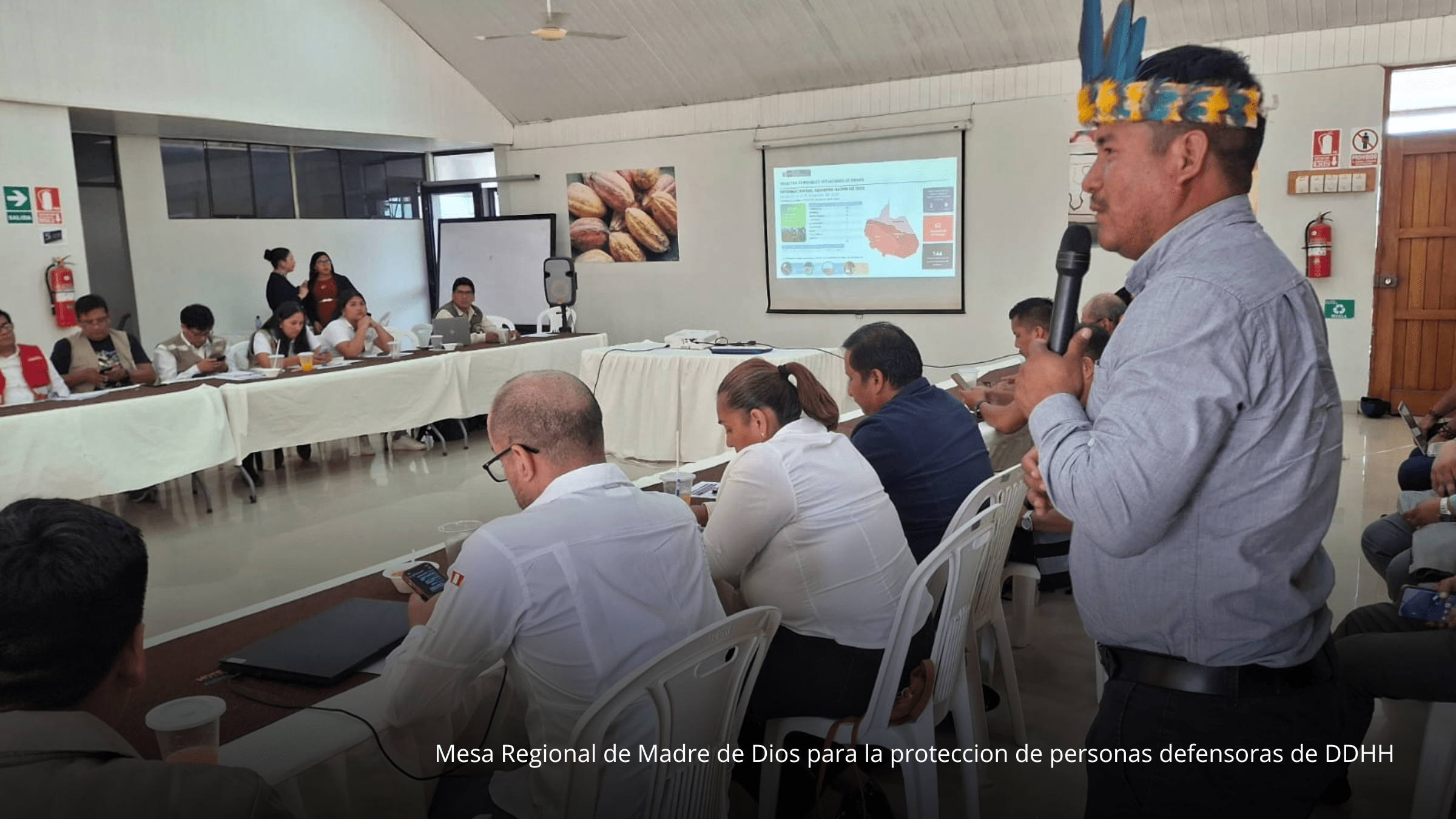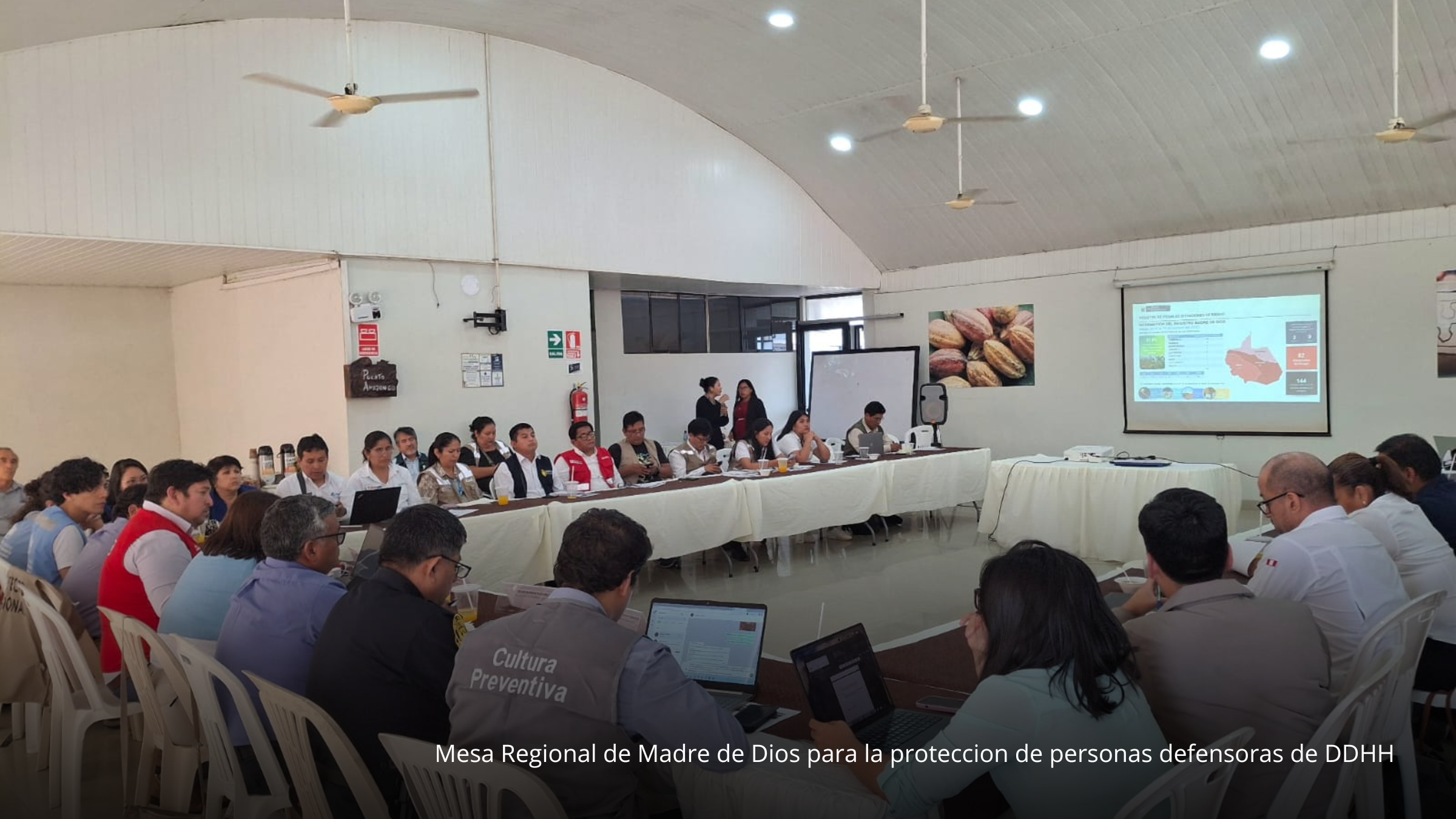 Desde el ámbito de la veeduría y articulación regional, FENAMAD participó activamente en la Cuarta Asamblea Ordinaria de la Comisión Ambiental Regional de Madre de Dios, fortaleciendo la presencia y voz indígena en los espacios de gobernanza ambiental. Asimismo, en el marco de la apertura de la Mesa Regional para la Protección de Personas Defensoras de Derechos Humanos, impulsada por el Ministerio de Justicia y Derechos Humanos (MINJUS), FENAMAD visibilizó la limitada atención y los escasos avances en la protección de defensores y defensoras ambientales en la región.