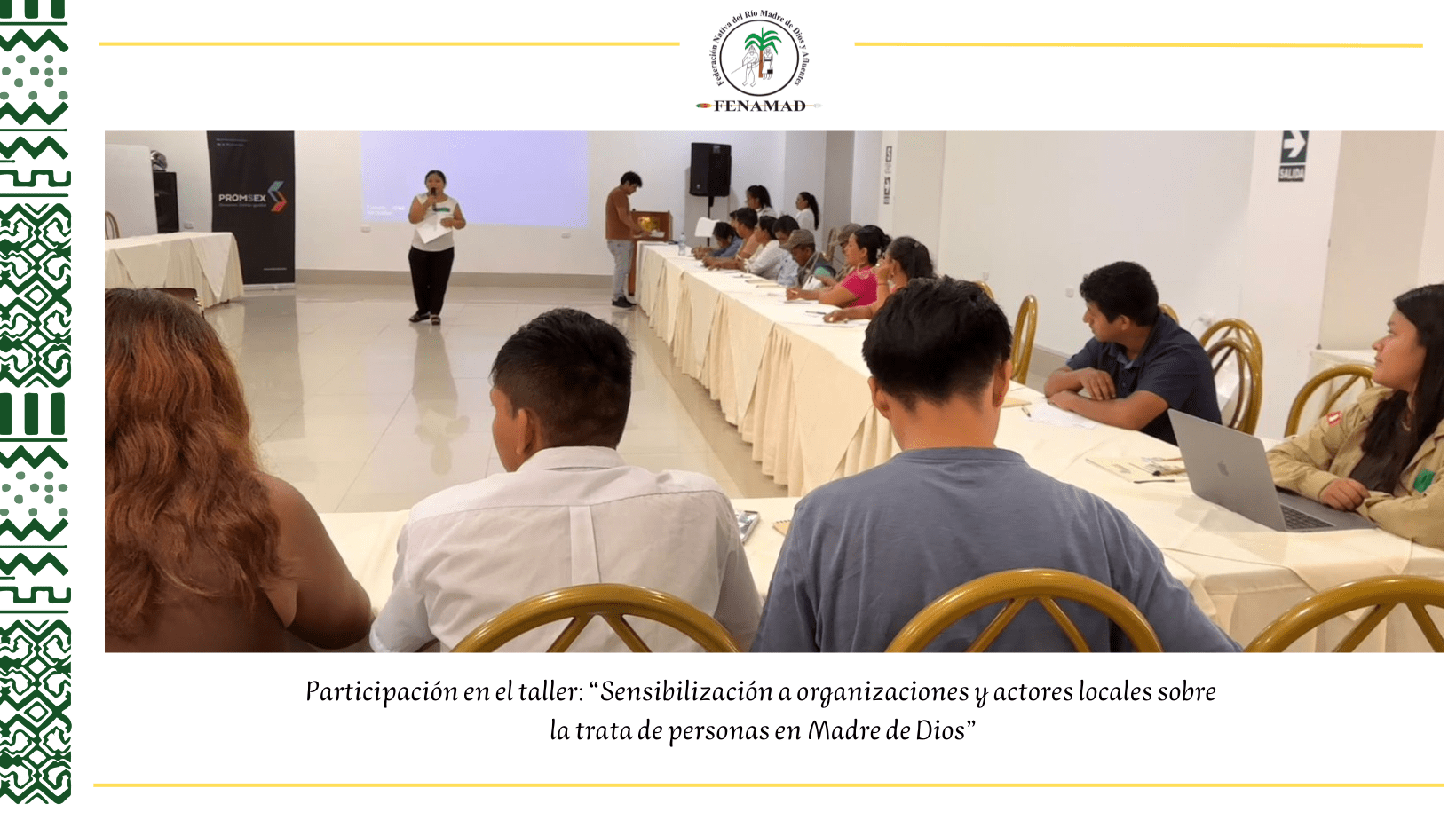 Finalmente, en una muestra de firme compromiso con la protección de poblaciones vulnerables, se participó en el Taller: “Sensibilización a organizaciones y actores locales sobre la trata de personas en Madre de Dios”.