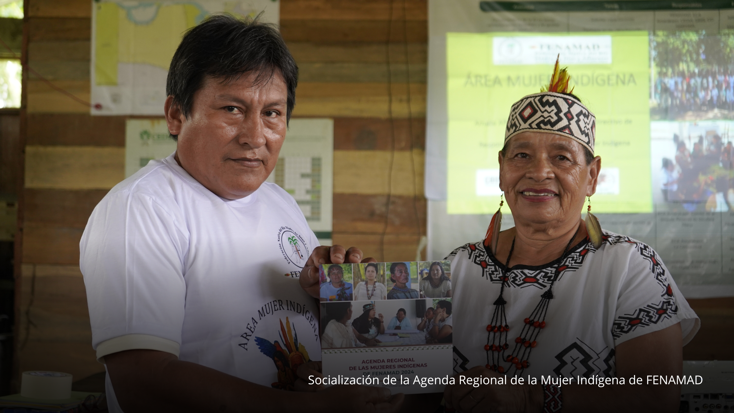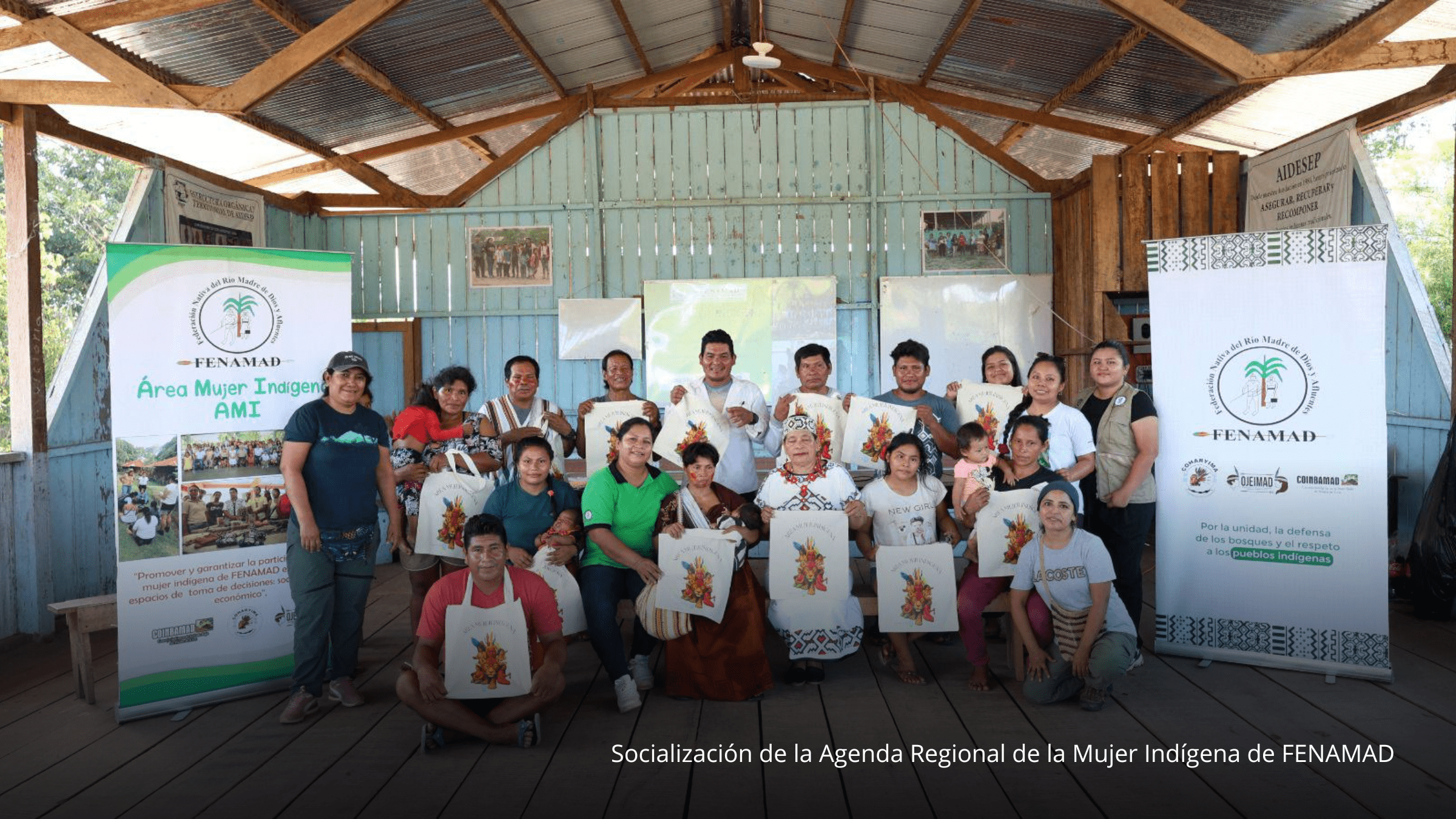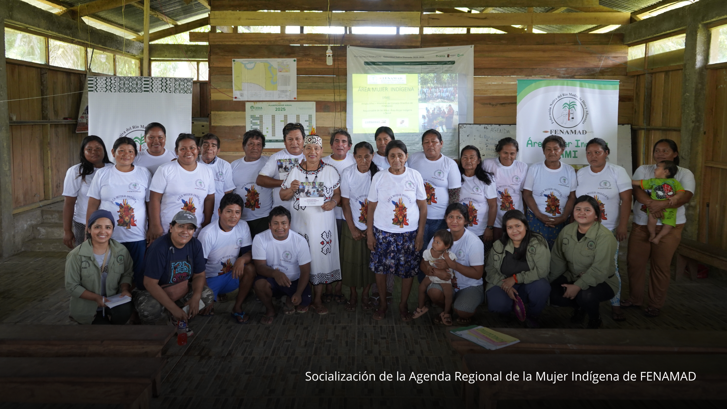 Paralelamente a estos esfuerzos de defensa territorial, FENAMAD viene fortaleciendo la participación, liderazgo y ejercicio de derechos de las mujeres indígenas en los espacios comunales y organizativos. Bajo el liderazgo de Amalia Añez de Garrido, el área de Mujer Indígena realizó visitas a las comunidades nativas Monte Salvado, Puerto Nuevo, Mirador Santa Alicia, Diamante, Shintuya y Santa Rosa de Huacaria para socializar e implementar la Agenda Regional de las Mujeres Indígenas de FENAMAD, su principal documento de gestión. Durante estas visitas se abordaron ejes estratégicos vinculados a la economía, soberanía y seguridad alimentaria, así como el eje sobre violencia contra la mujer, adolescentes, niños, niñas y adultos mayores indígenas. Además, en el marco de la reunión del Comité Consultivo de la Mujer Indígena Originaria de FENAMAD, se socializaron y aprobaron importantes instrumentos de gestión institucional, entre ellos el Protocolo para la atención de casos de violencia de género en las comunidades bases y la Política de Género de FENAMAD, herramientas que permitirán fortalecer las acciones de prevención, atención y acompañamiento frente a situaciones de violencia, así como promover la igualdad de oportunidades dentro de la organización.