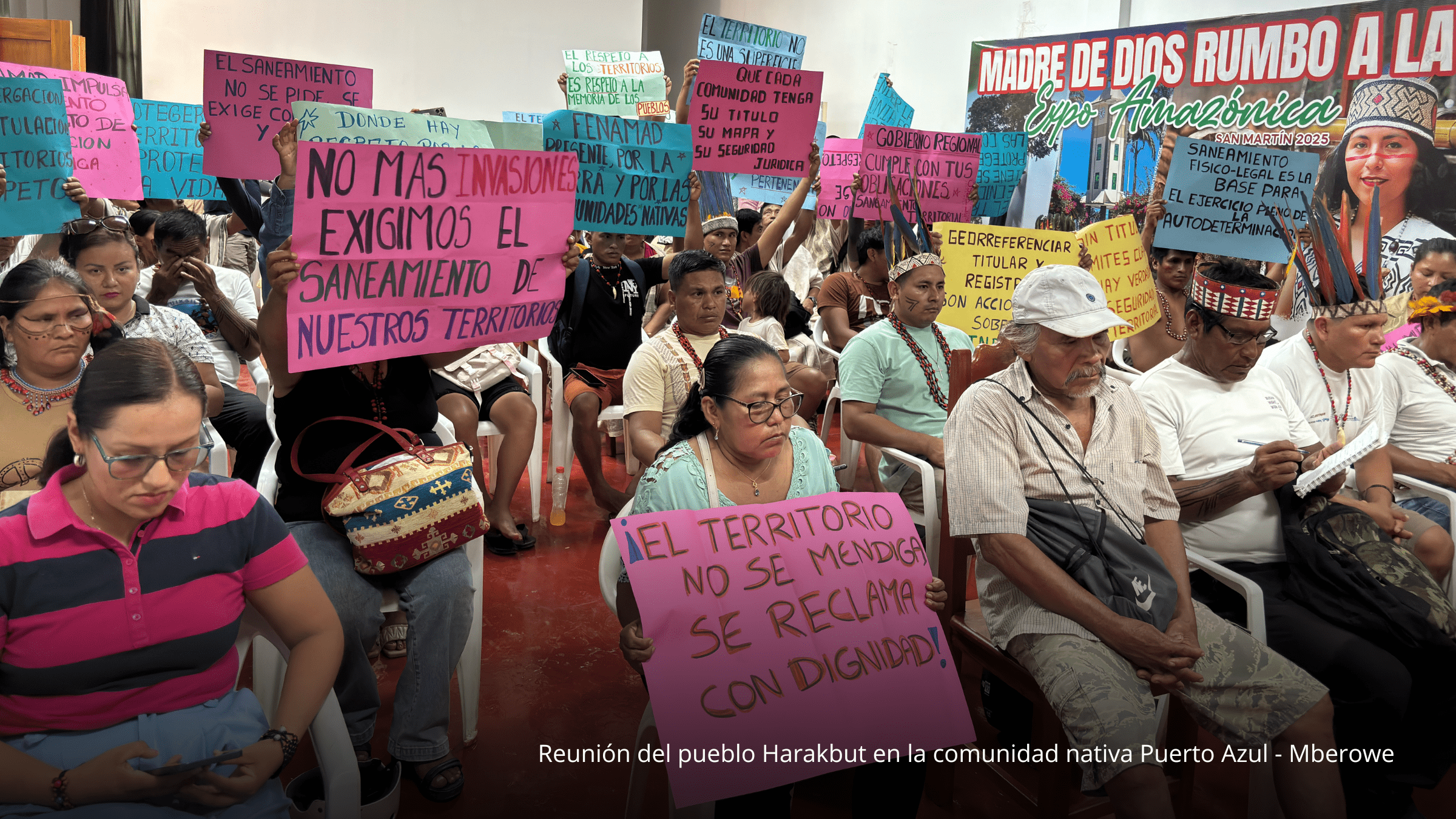 Como consecuencia de estas gestiones, el pueblo Harakbut y los dirigentes de FENAMAD convocaron a una reunión en la comunidad nativa Puerto Azul – Mberowe con autoridades regionales y provinciales. Mediante carta múltiple 009-2025 se invitó al Gobernador Regional de Madre de Dios, a la Alcaldesa del distrito Fitzcarrald y al Gerente de la Sub Región Manu, quienes justificaron su inasistencia alegando «motivos de fuerza mayor».